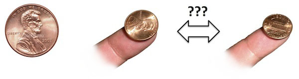 So what can we learn from this? We've concluded that if nature hasn't endowed us with sensors that have incredibly high-resolution to do such tasks, clearly it is not that important to do things humans do. When presenting this test, I typically wait for someone to interject with the idea that they can tell which side they are touching, a perfect segue to what the sense of touch really is. Clearly when reaching into our pockets it is rather trivial to determine which side of the coin you are touching. This feature extraction is however completely unrelated to the sense of high-resolution imaging, and instead completely dependent on vibrations. Looking closely at the penny you'll notice that the tail's side has some high-contrast features: the text of "ONE CENT" and "UNITED STATES OF AMERICA" as well as the columns and edges of Lincoln's memorial all elicit very powerful vibrations when sliding your finger over them, especially compared to the other side of the penny which is relatively smooth. This is an excellent example of why multi-modal touch with the full suite of sensory capabilities of the human finger are necessary, without the ability to detect these vibrations we would be completely helpless in this task. Developing a sensor that has such multi-modal sensor capabilities is one of the core design principles of the BioTac.